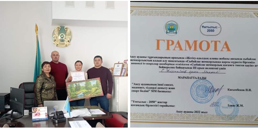 "Сыбайлас жемқорлық қоғамға төнген қауіп" атты   бейнеролик байқауында Е.Жайсаңбаев мектебі      III орын иеленді.