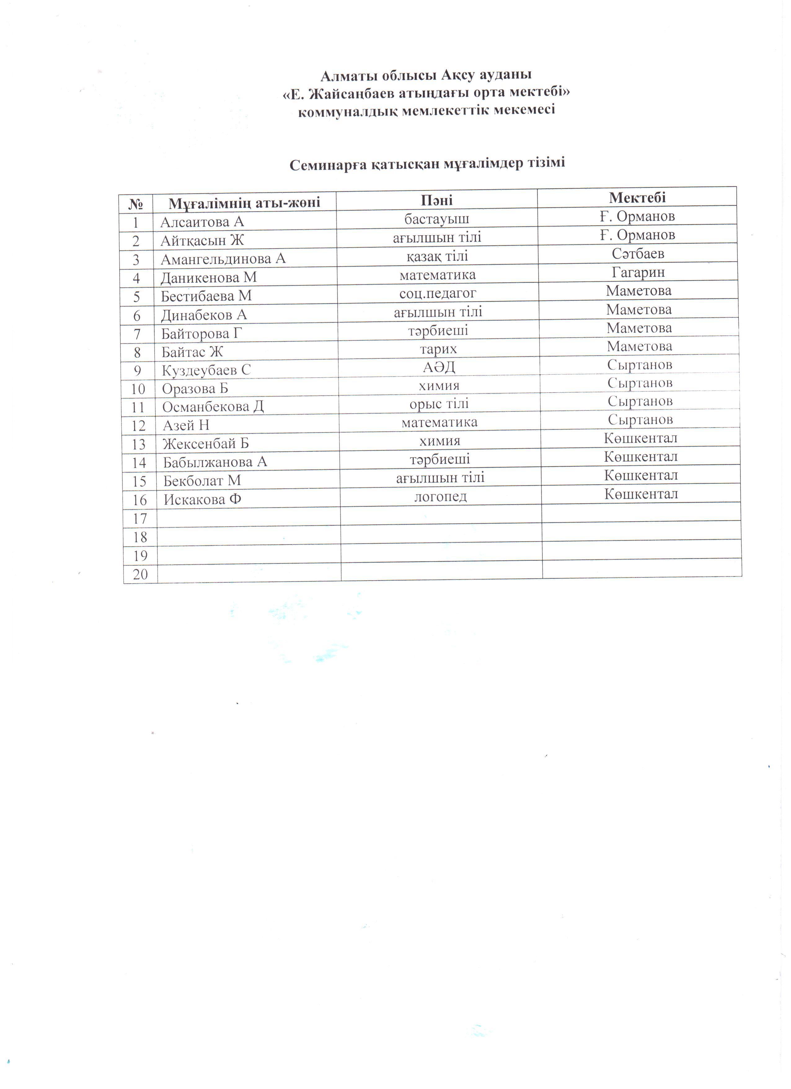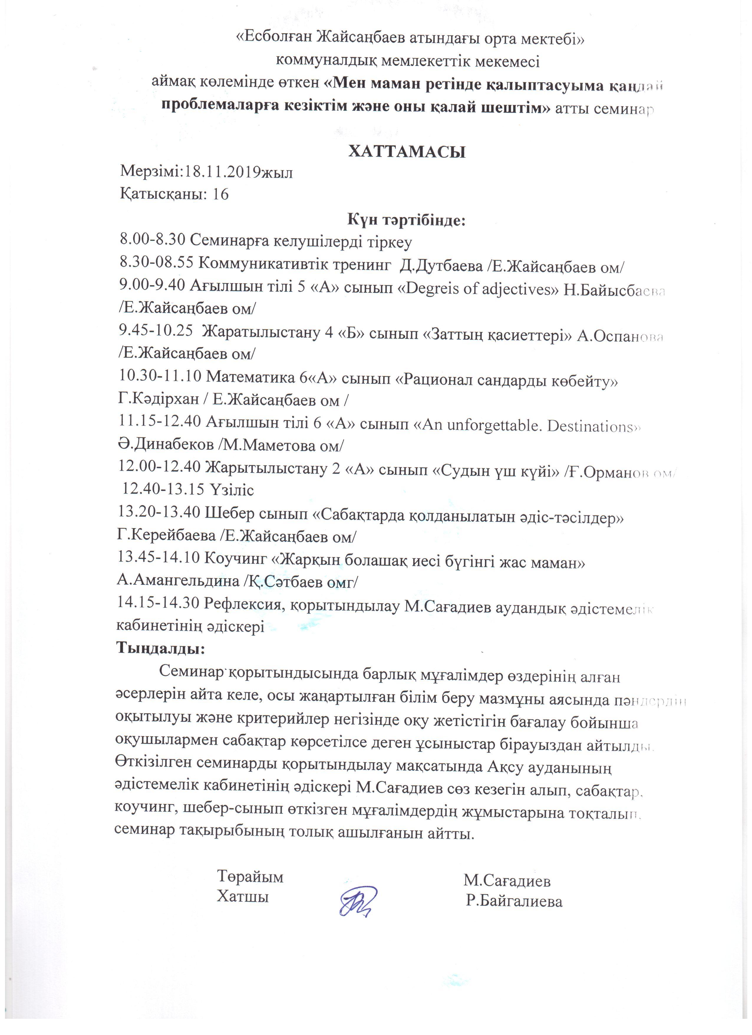 Семинар был организован и проведен совместно с педагогическим коллективом и методистом районного отдела образования М.Сағадиевым.