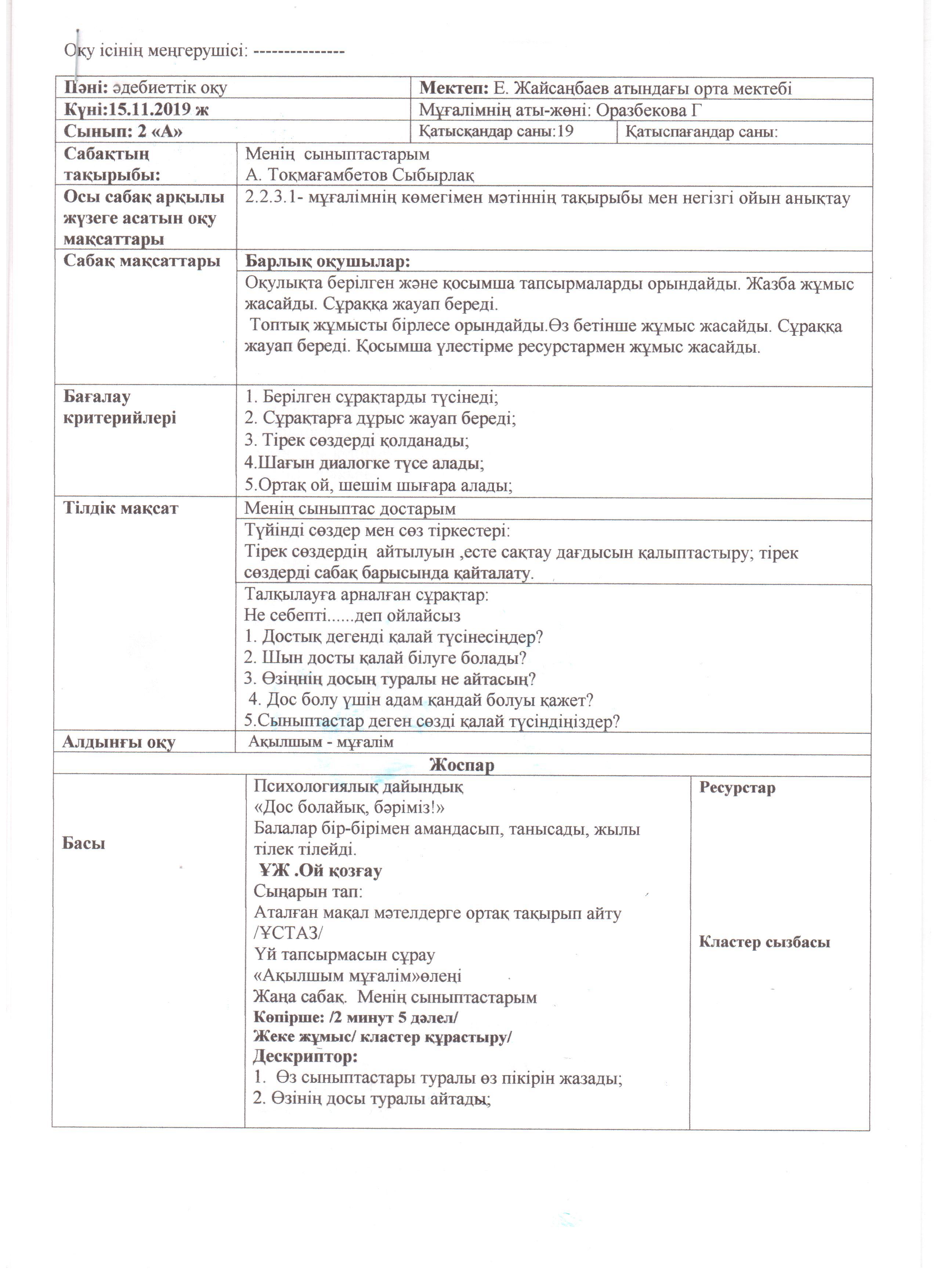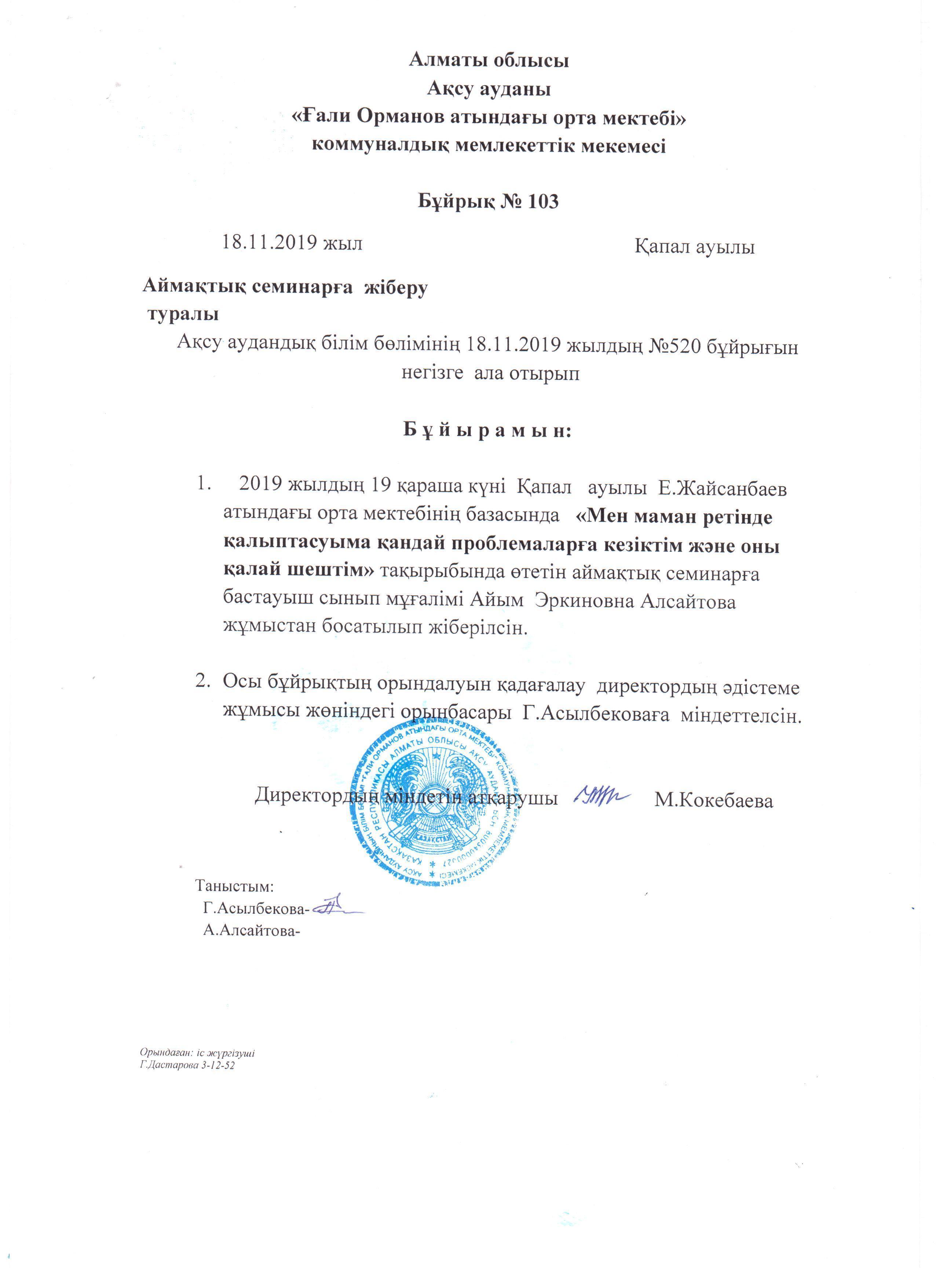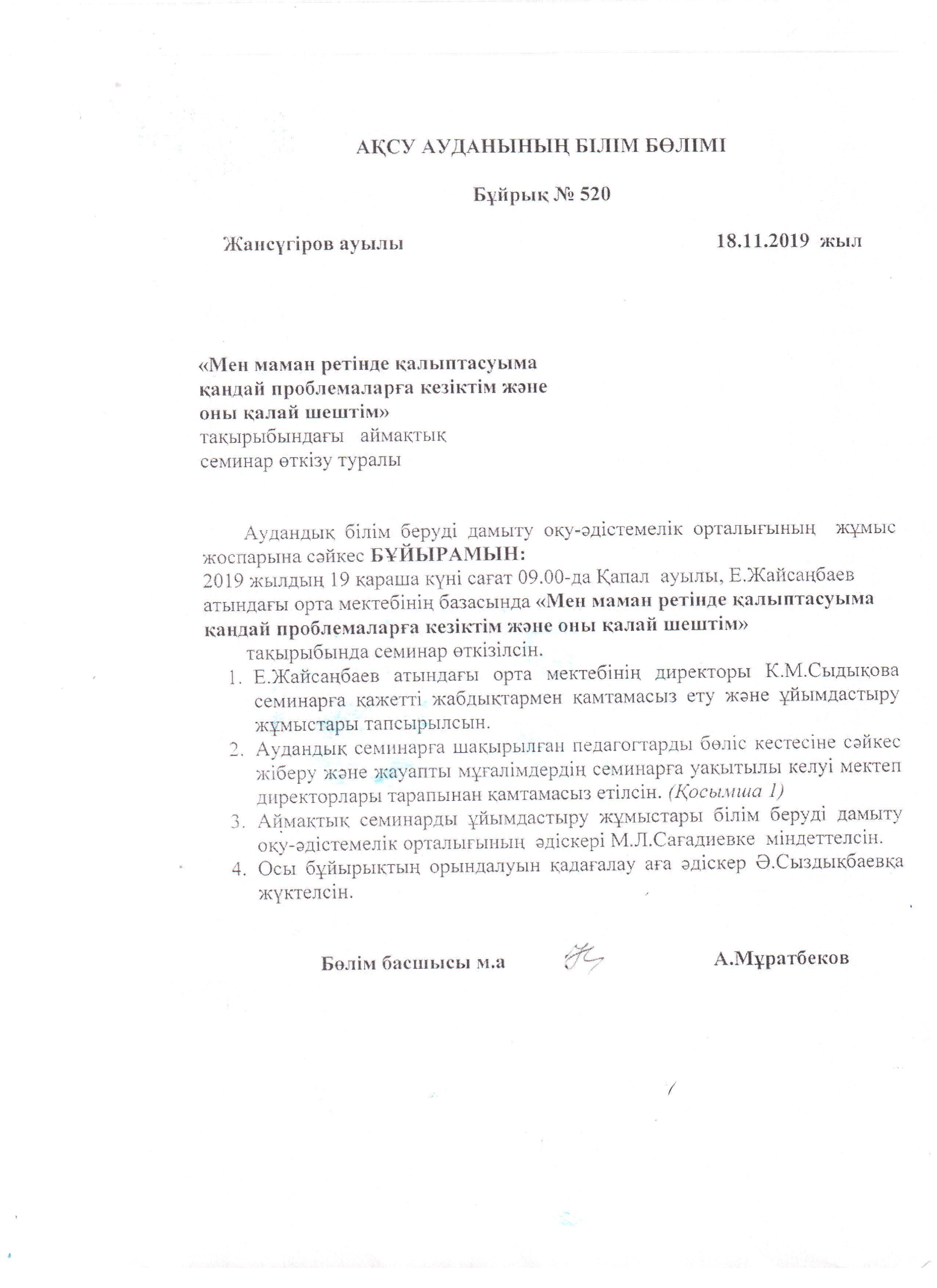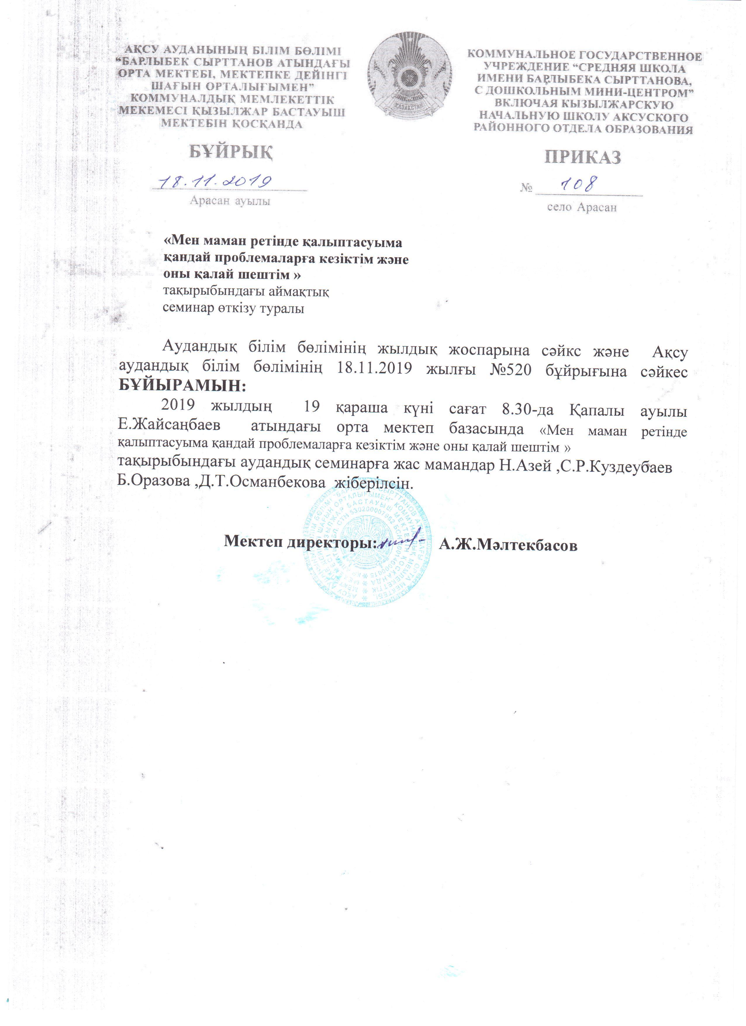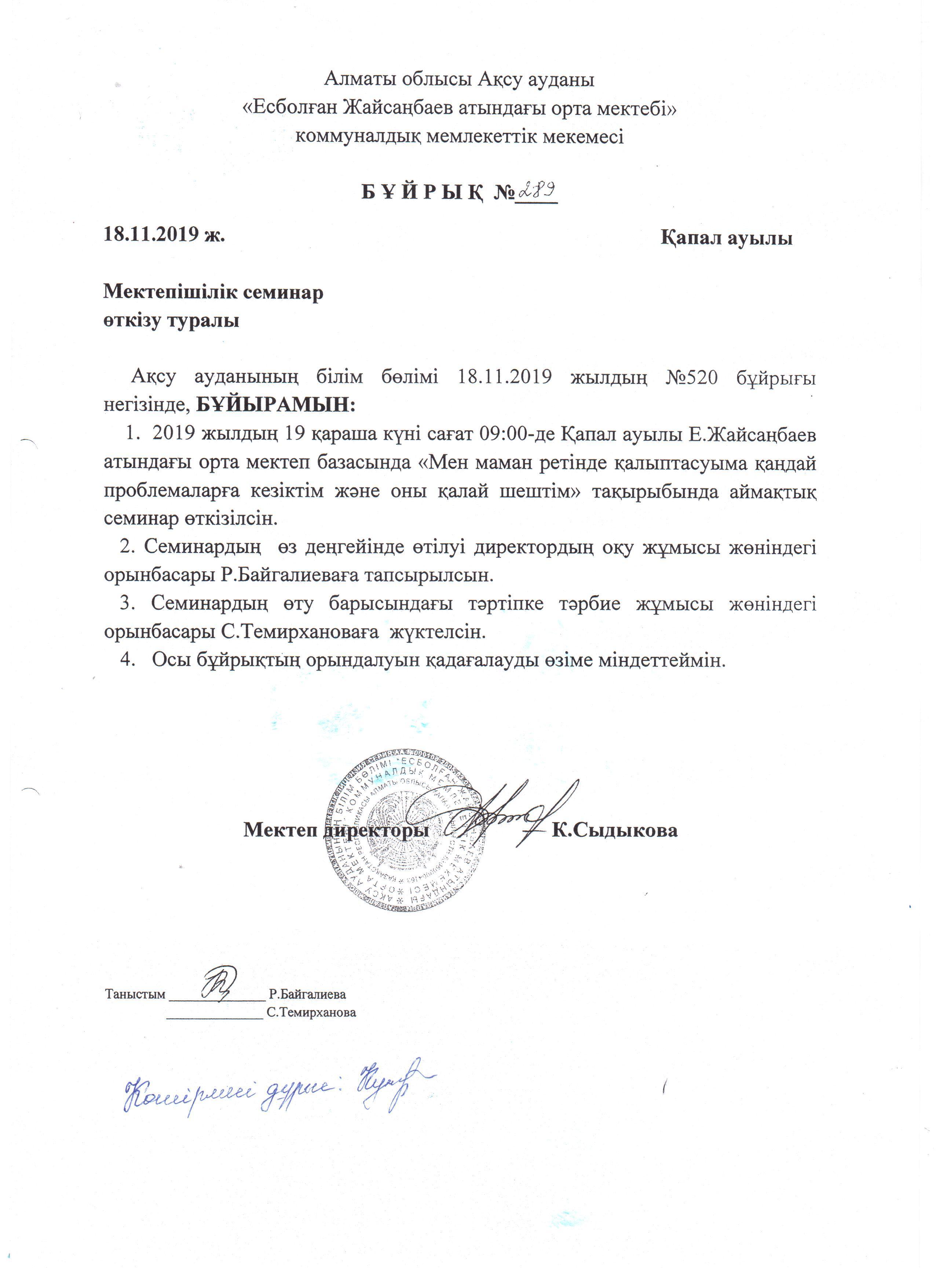 19 ноября 2019 года согласно плану методического отдела, на базе средней школы имени Е.Жайсанбаева прошел семинар для молодых специалистов "Проблемы возникшие в ходе своей деятельности и пути их решения ".
