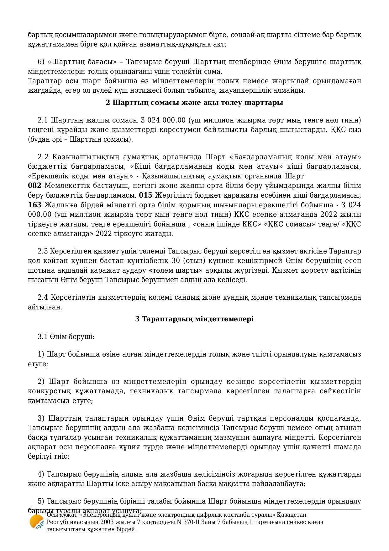 Ыстық тамақ келісімшарты » "Есболған Жайсаңбаев атындағы орта мектебі" Education Department of Kerbulak district