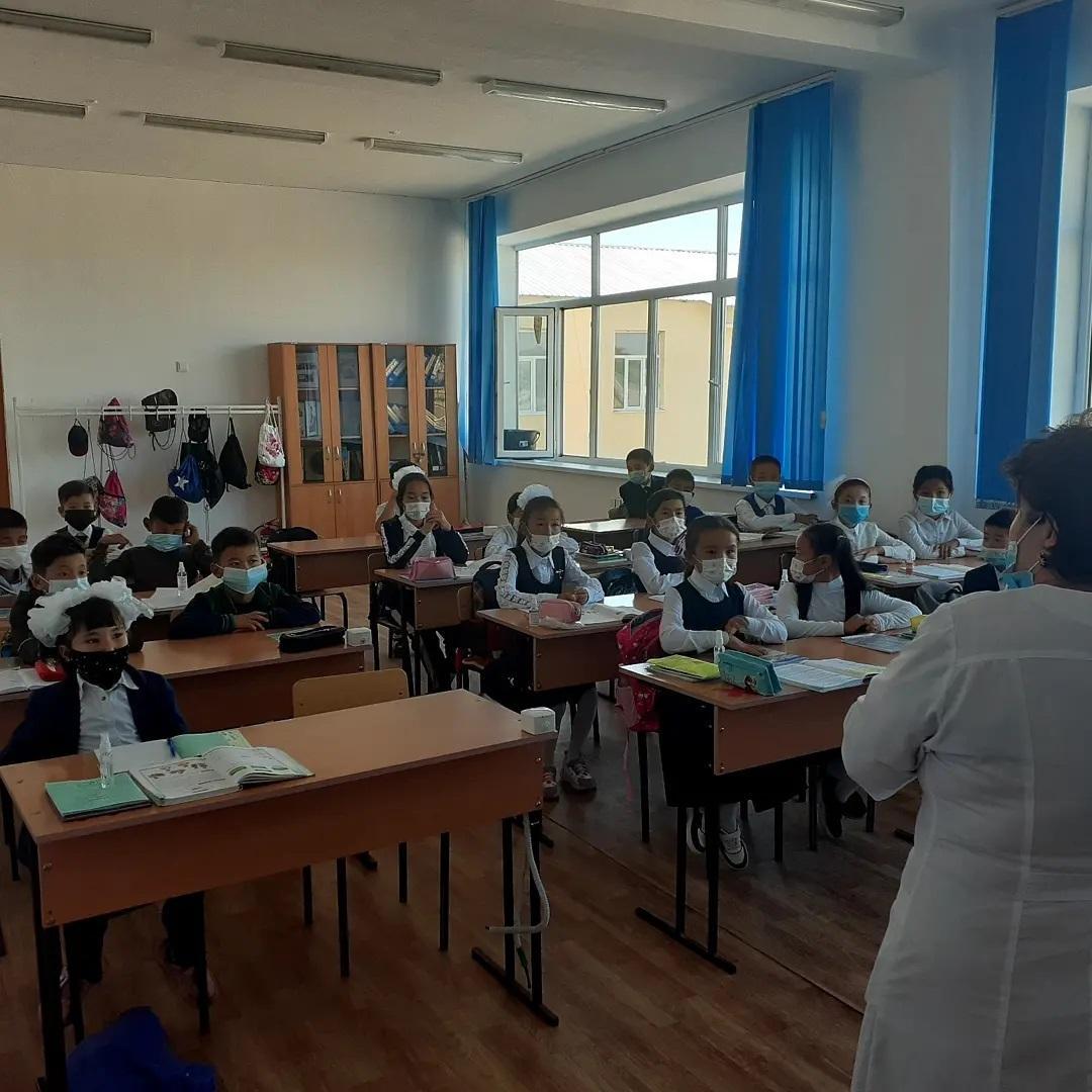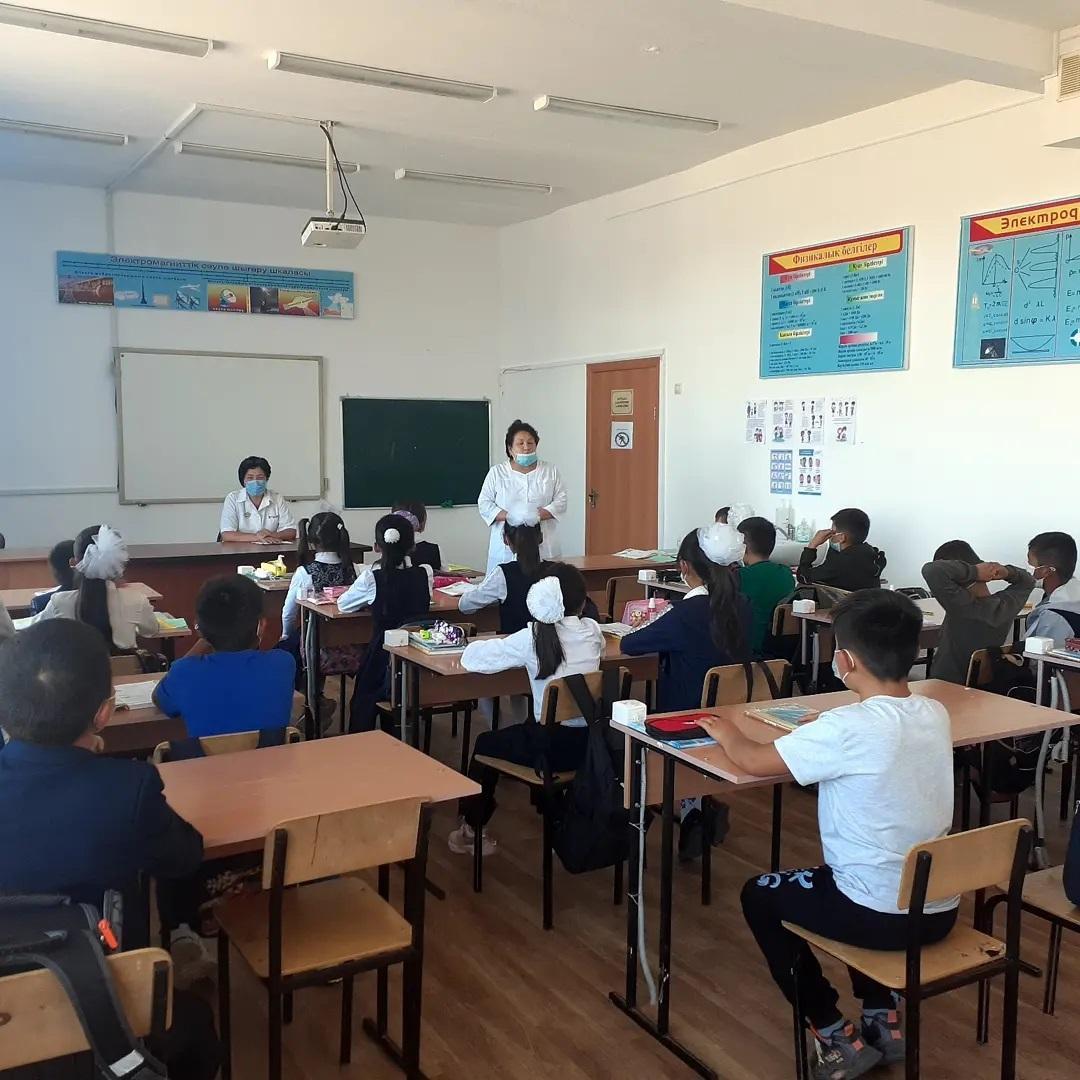 08 сентябрь 2021 0 1 2 3 4 5 Күнделікті санитарлық талап "Е.Жайсаңбаев атындағы орта мектебі" коммуналдық мемлекеттік мекемеснің оқушыларын Қапал ауылдық аурухананың бас дәрігері Тойлыбаева Алия Шормаковна мен мектеп медбикесі Г.Есимбекова күнделікті санитарлық тазалықты, сақтық шарасын ұстануға шақырды.