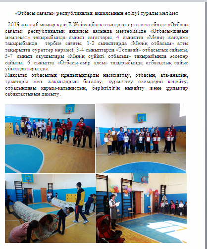 Отбасы сағаты » "Есболған Жайсаңбаев атындағы орта мектебі" коммуналдық мемлекеттік мекемесі