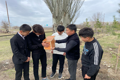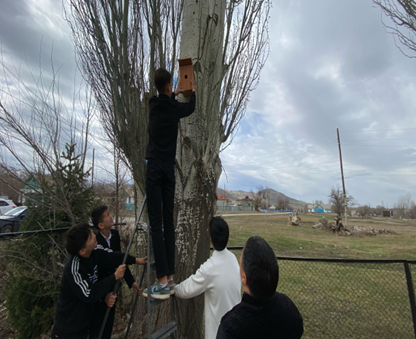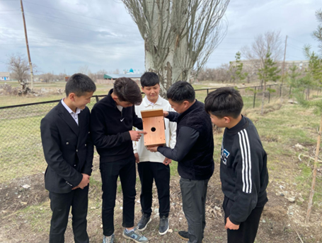 Жоба аясында "Е. Жайсаңбаев атындағы орта мектебі" коммуналдық мемлекеттік мекемесінің директордың тәрбие орынбасары С. Жасболат пен көркем енбек пән мұғалімі А. Сауытқалидың ұйымдастыруымен 8сынып оқушыларымен 1 сәуір -Құстар күніне арнап ұя жасау. Құстарға ұя жасау табиғатты қорғаудың тамаша тәсілі. Бұл іс-шара құстарға баспана сыйлап қана қоймай, балалар мен жастарға экологиялық тәрбие беру мақсатында. Мектеп ауласында құстарға ұя жасап, ілінді.