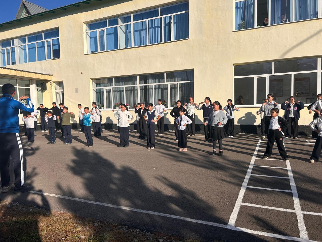 21.10.2025ж " Есболған Жайсаңбаев атындағы орта мектебінде" оқушылардың сергек көңіл-күймен күндерін бастау мақсатында таңғы жаттығу ұйымдастырылды.