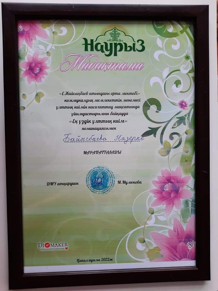 Жетістіктер » "Есболған Жайсаңбаев атындағы орта мектебі" отдела образования Кербулакского района